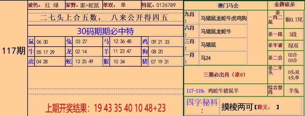 2025117期:30码中特图
